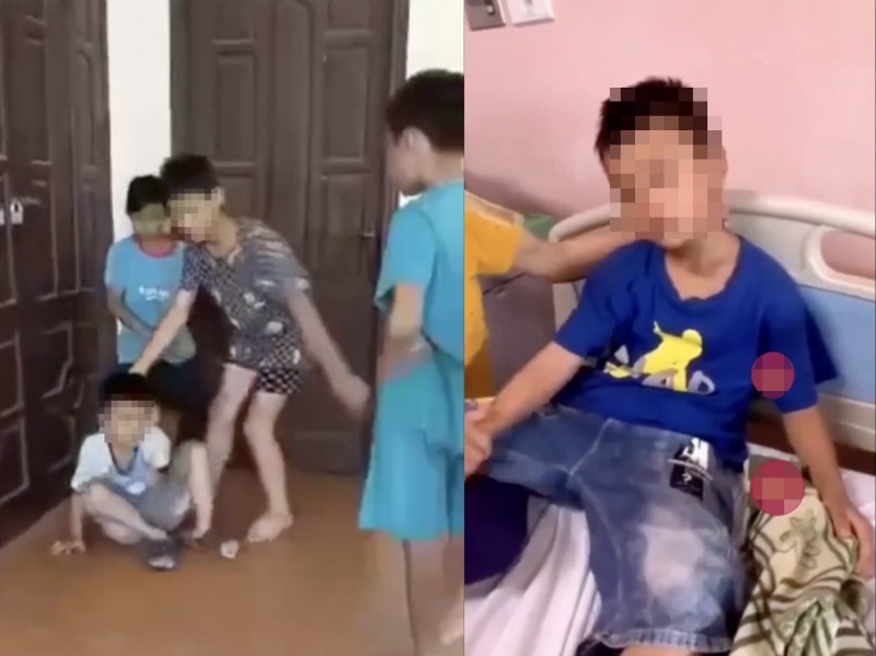 Trước đó, giáo viên và học sinh trong trường có 1 lần phát hiện K. bị bạn hành hung tại trường. Còn clip em K. bị đánh xuất hiện trên mạng được các bạn hành hung và trực tiếp quay lại xảy ra ở nhà văn hoá thôn trong dịp nghỉ hè.