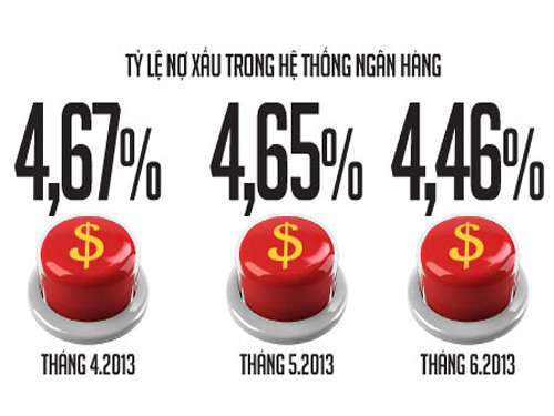 Thực ra, ngay khi nhận thấy nợ xấu có nguy cơ tăng cao sau một thời gian dài tăng trưởng tín dụng nóng, NHNN đã lo đến việc xử lý nợ xấu bằng việc yêu cầu các tổ chức tín dụng trích đúng, trích đủ dự phòng rủi ro. Nhờ xử lý nợ xấu bằng dự phòng rủi ro và cơ cấu lại nợ theo Quyết định số 780/QĐ-NHNN, đến cuối tháng 4/2013 tỷ lệ nợ xấu trong tổng dư nợ tín dụng của hệ thống ngân hàng còn 4,67%; cuối tháng 5/2013 giảm còn 4,65% và cuối tháng 6/2013 về mức 4,46%.
