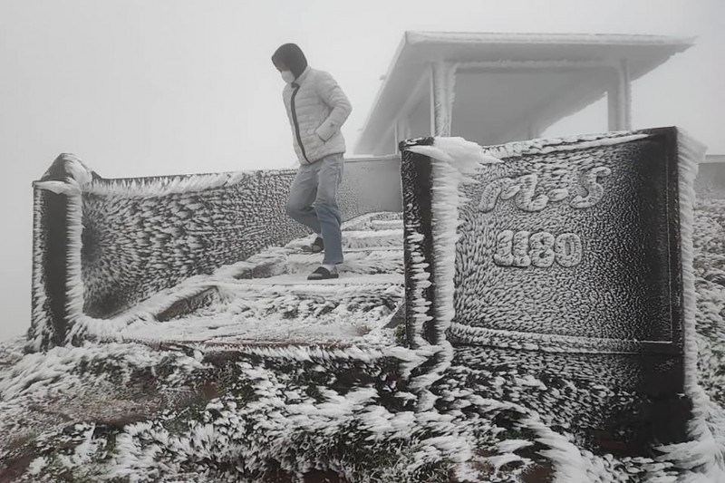 | Nhiệt độ trên đỉnh Mẫu Sơn có lúc xuống -1 độ C |