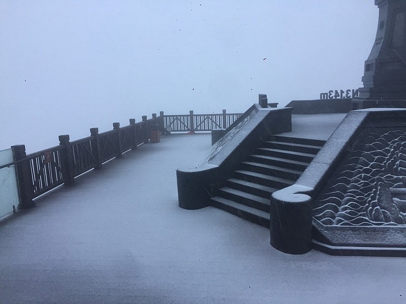 Đỉnh núi Fansipan cao 3.143m ở Lào Cai xuất hiện mưa tuyết và kéo dài đến thời điểm hiện tại. Một nhân viên làm việc ở đỉnh núi cho biết, hiện nhiệt độ ngoài trời tại đây ghi nhận -5 độ C, tuyết đang rơi dày thêm. Diện mưa tuyết đã mở rộng xuống độ cao 2.800m.