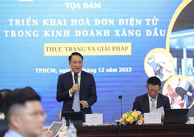 | Tọa đàm Triển khai Hóa đơn điện tử trong bán lẻ xăng dầu - Thực trạng và giải pháp” (Ảnh: Báo Tiền Phong) |