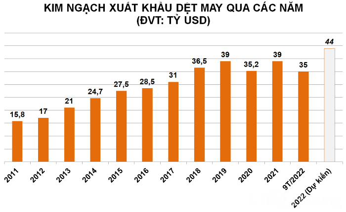 Năm nay, dệt may Việt Nam đặt kỳ vọng sẽ mang về 44 tỷ USD kim ngạch xuất khẩu, theo đó, ba tháng còn lại của năm, ngành hàng sẽ phải mang về thêm gần 9 tỷ USD, tương đương khoảng 3 tỷ USD/tháng.