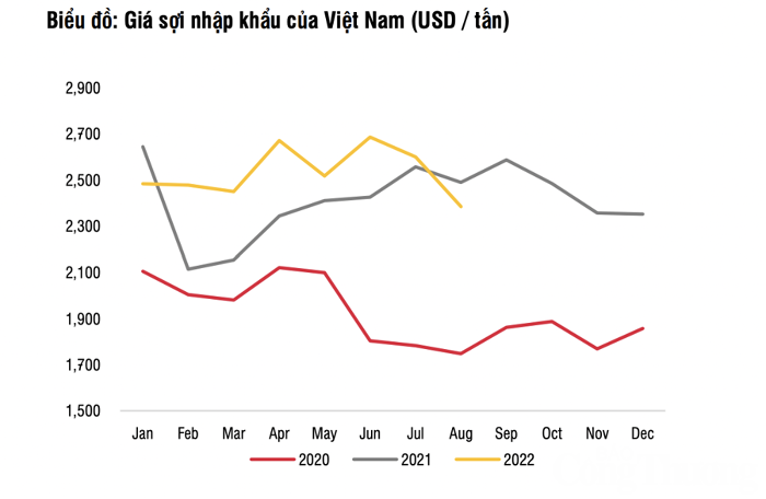 Về giá bán, hầu hết các khách hàng đang đàm phán để giảm đơn đặt hàng. Ngay cả những đơn hàng CMT, đơn hàng mà khách hàng chỉ phải trả chi phí nhân công, hiện cũng đang bị ép giá. Các nhà sản xuất sợi đã chứng kiến giá bán bình quân giảm 8% so với cùng kỳ trong tháng 8.
