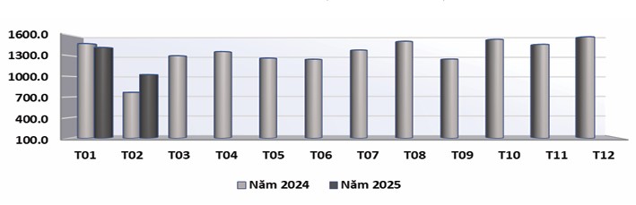 Tình hình xuất khẩu gỗ và sản phẩm gỗ của Việt Nam qua các tháng năm 2024 - 2025 (ĐVT: triệu USD)