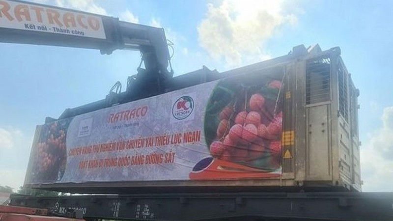 | Ngành đường sắt vừa thử nghiệm vận chuyển lô vải thiều tươi Lục Ngạn sang Trung Quốc bằng container lạnh |