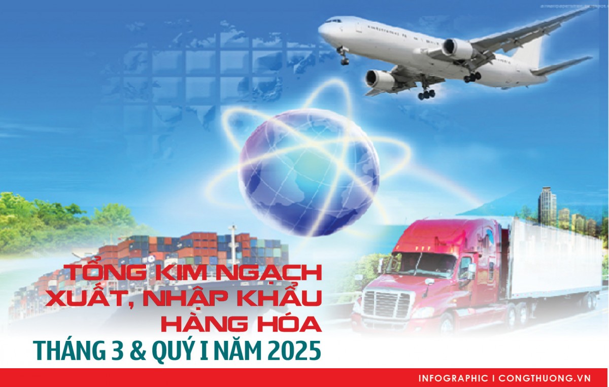 Tính chung quý I/2025, tổng kim ngạch xuất, nhập khẩu hàng hóa đạt 202,52 tỷ USD, tăng 13,7% so với cùng kỳ năm trước, trong đó xuất khẩu tăng 10,6%; nhập khẩu tăng 17,0%. Cán cân thương mại hàng hóa xuất siêu 3,16 tỷ USD.