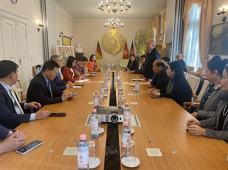 | Đoàn xúc tiến thương mại Việt Nam đã tới thăm và làm việc với Đại sứ quán Việt Nam tại Đức. Ảnh: Cục Xúc tiến thương mại |