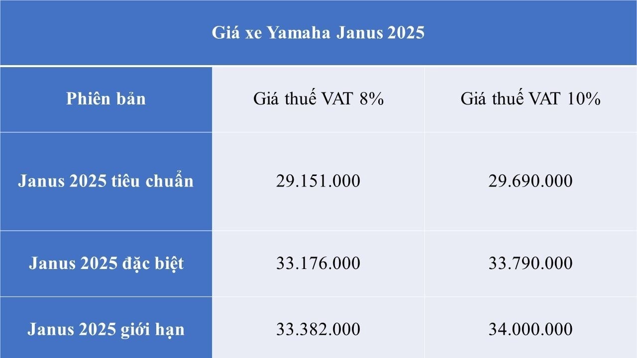 Yamaha Janus dự kiến sẽ được bán ra từ ngày 15/10/2024 với giá bán lẻ đề xuất như sau:
