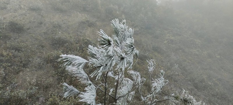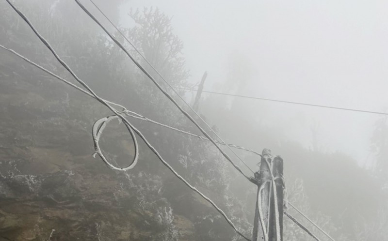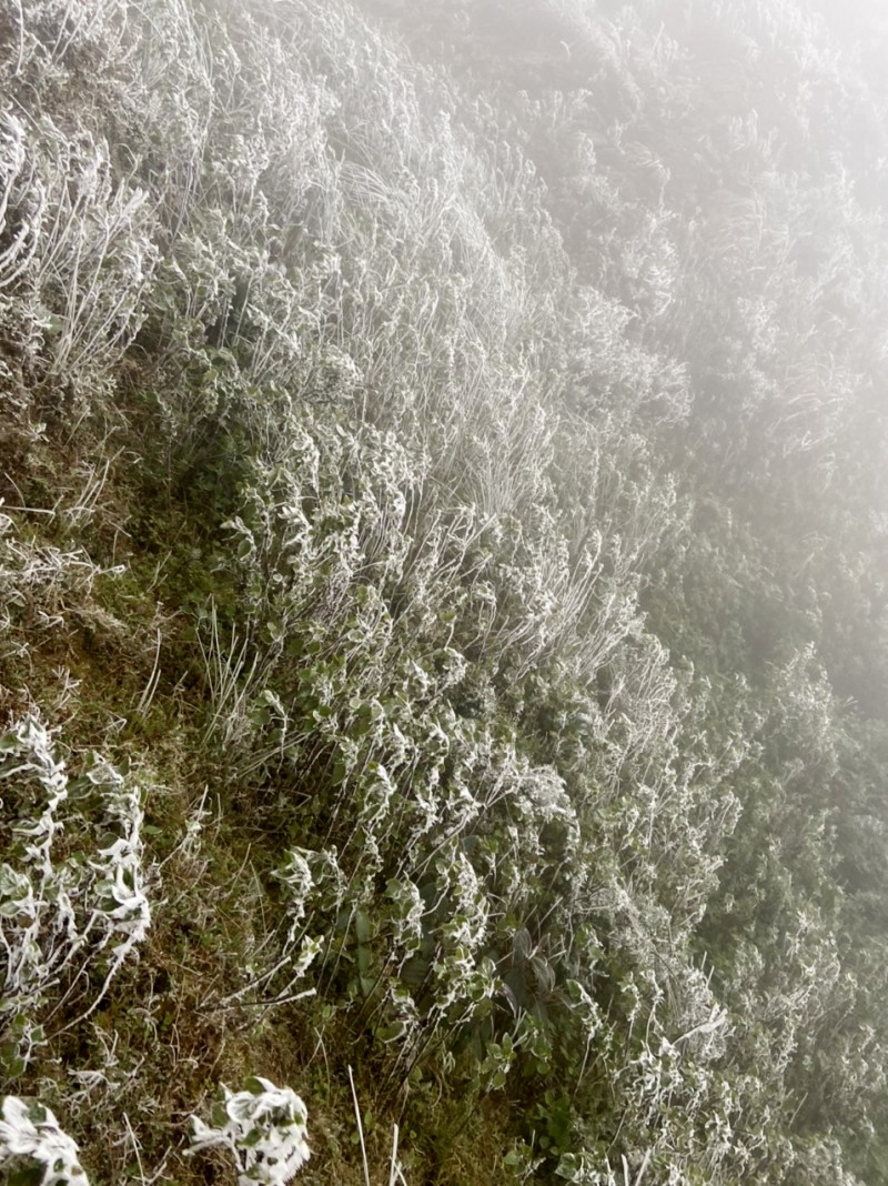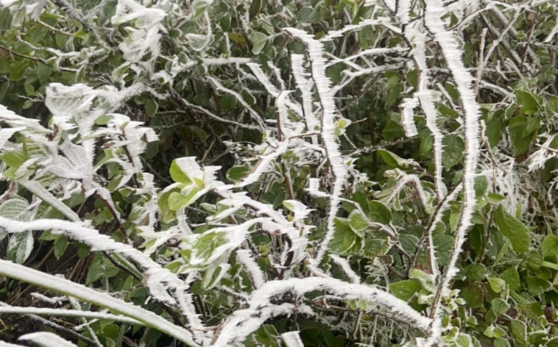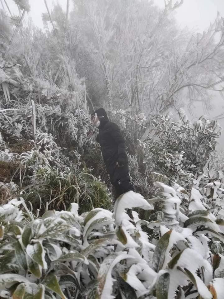| Băng giá xuất hiện tại đỉnh La Pán Tẩn sáng 22/12. Ảnh: Giàng A Lù |