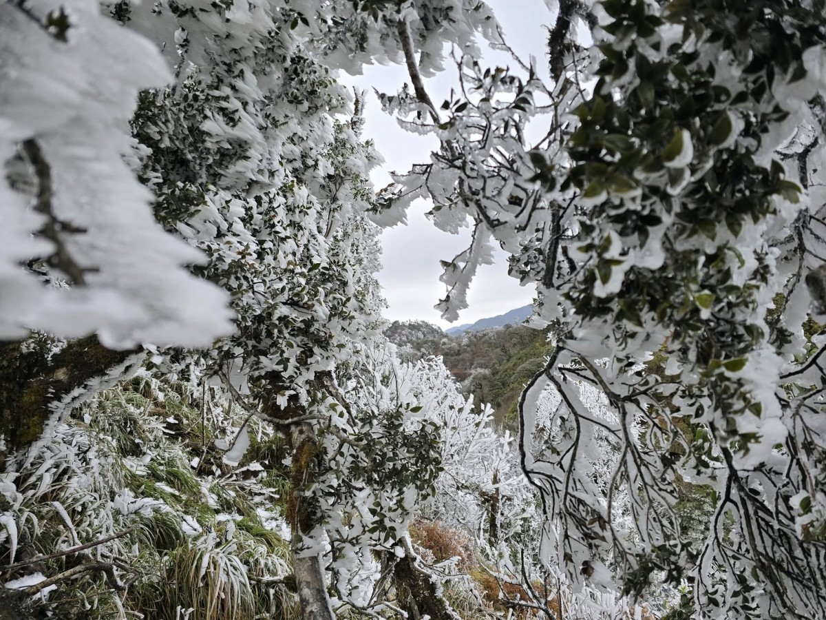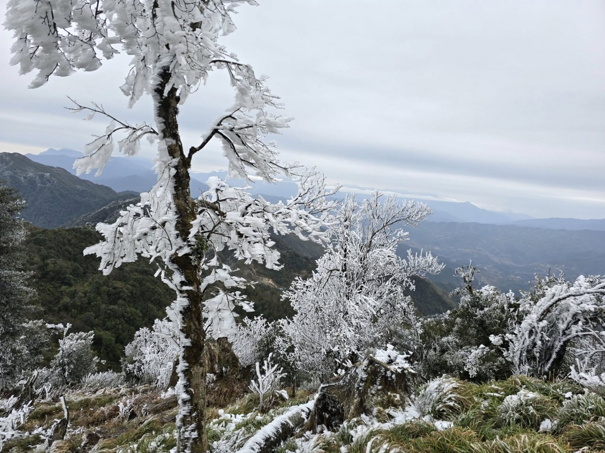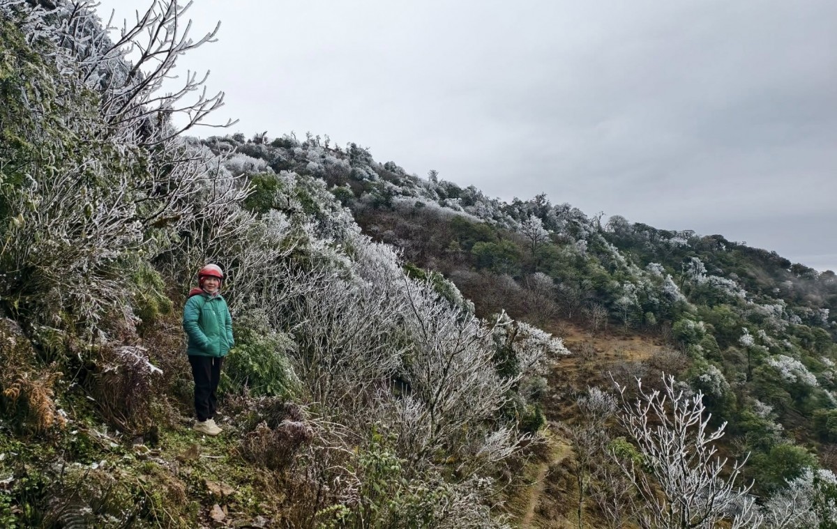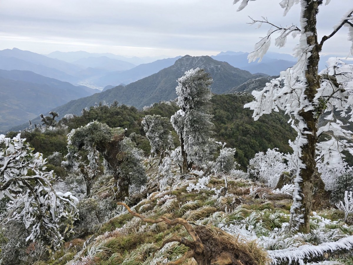 | Đây là lần thứ hai trong năm 2025, băng tuyết xuất hiện tại một số đỉnh núi ở huyện Mù Cang Chải và huyện Văn Chấn (lần 1 vào ngày 11/1/2025). Ảnh: Giàng Hạnh Phúc |