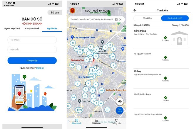 Các thông tin hiển thị trên chức năng Bản đồ số hộ kinh doanh (Ảnh: CTTĐTYB) |